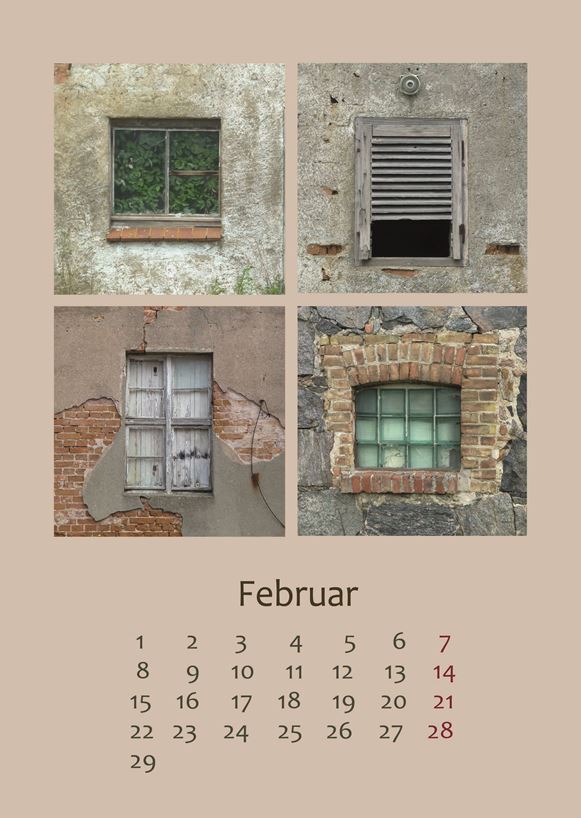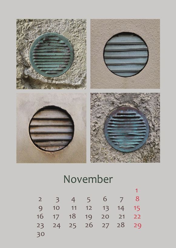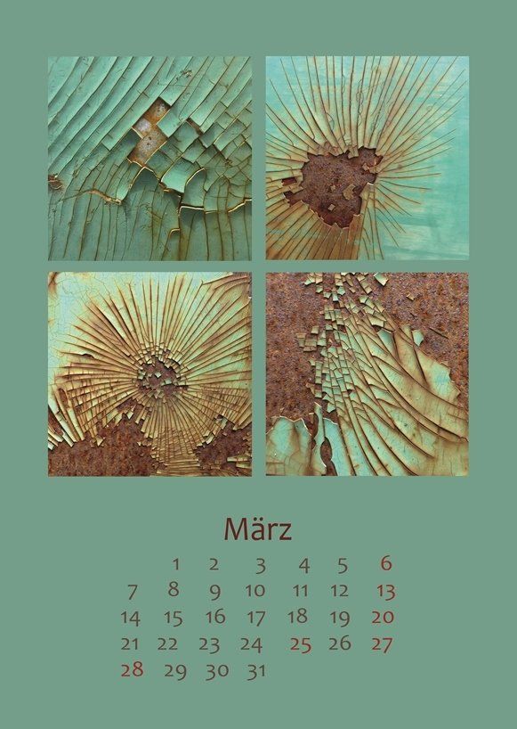 In diesen Kalendern finden Sie im Quadrat angeordnet jeweils vier sehr ähnliche, aber doch verschiedenen Motive.