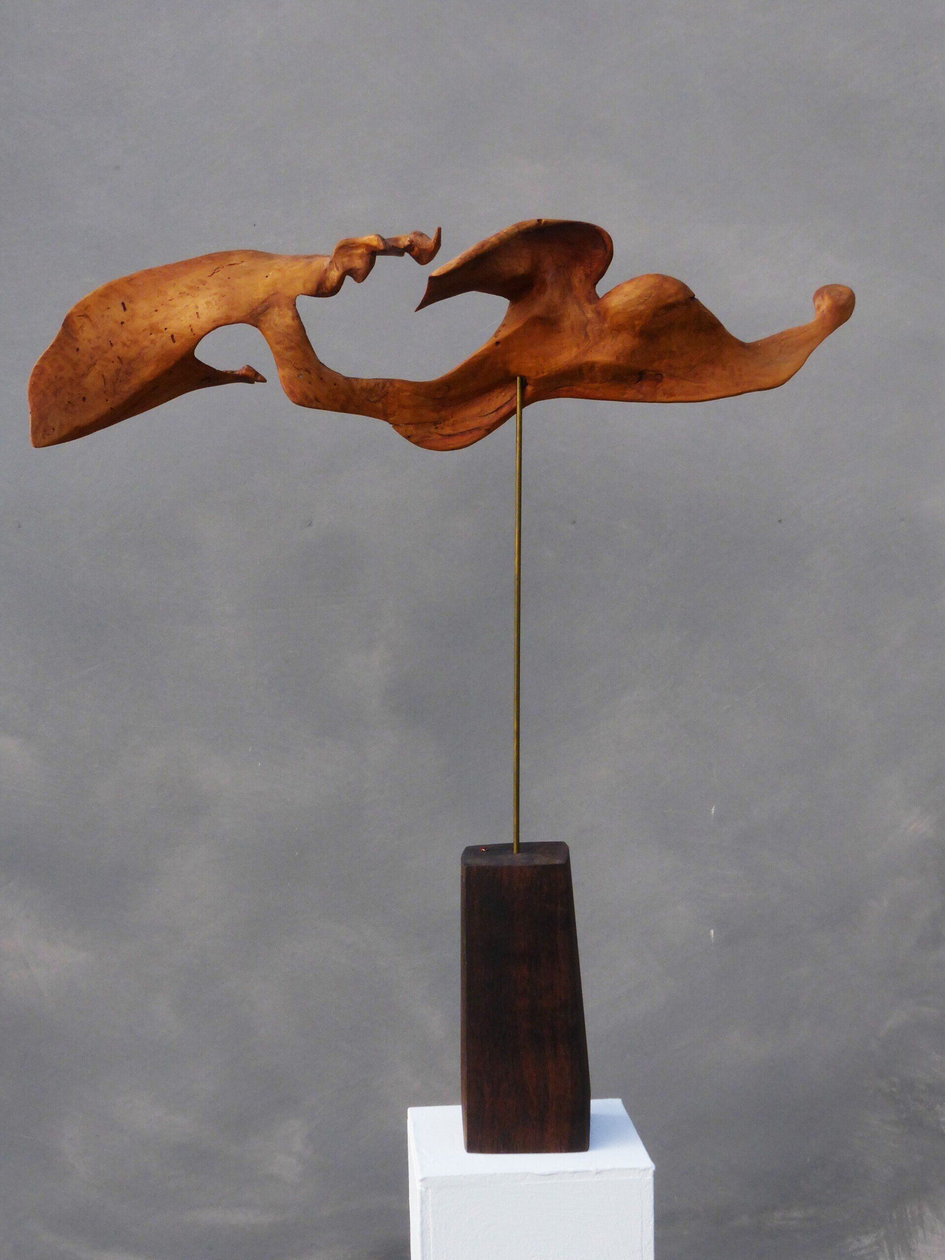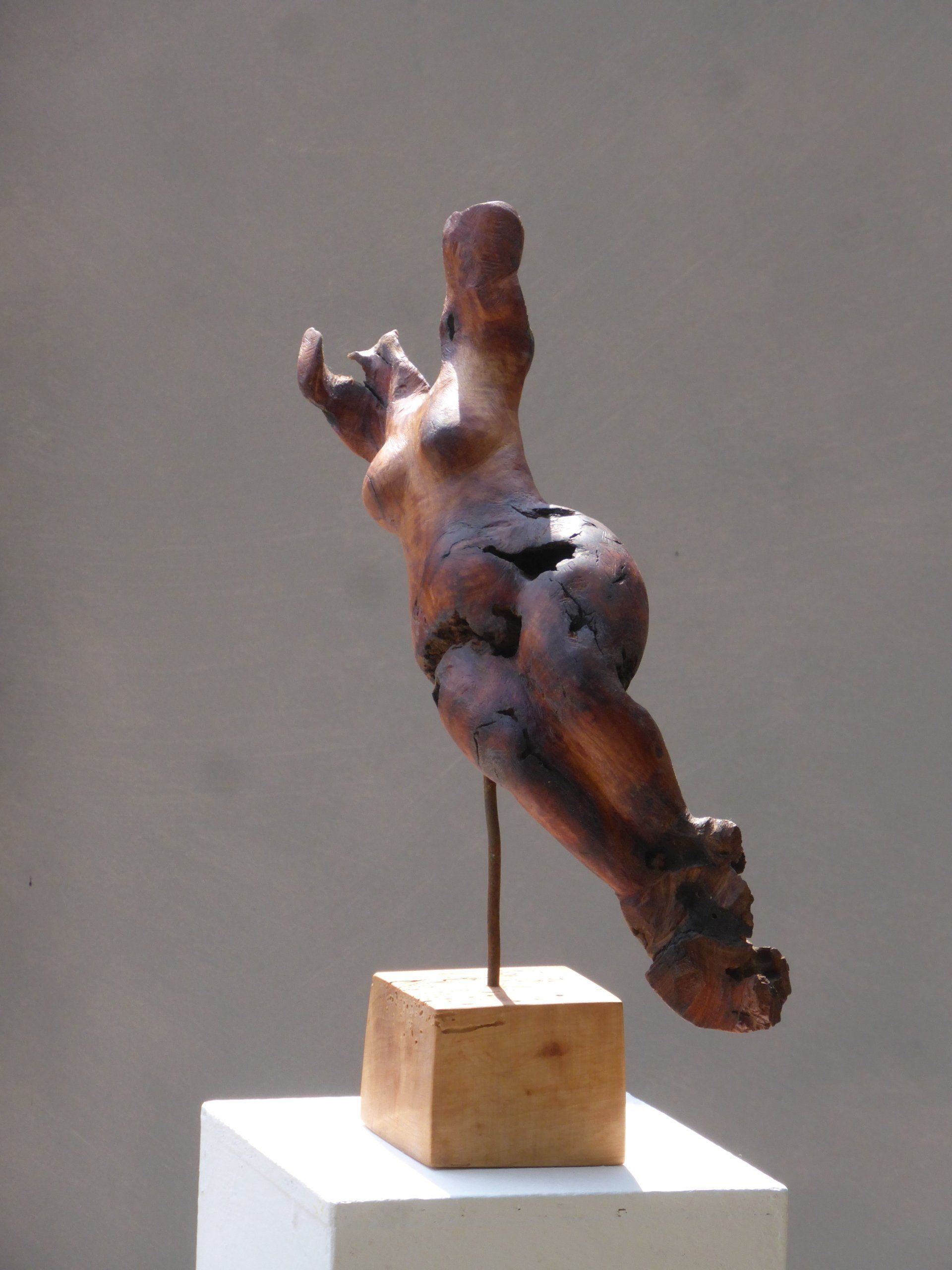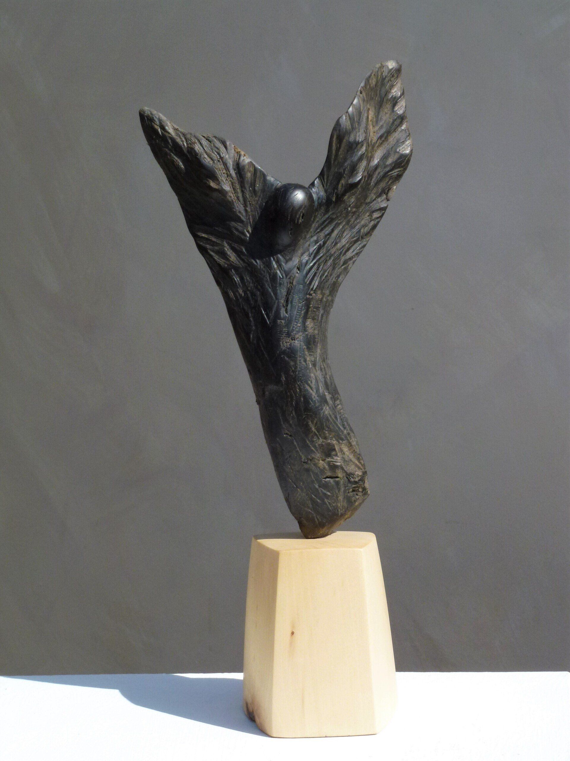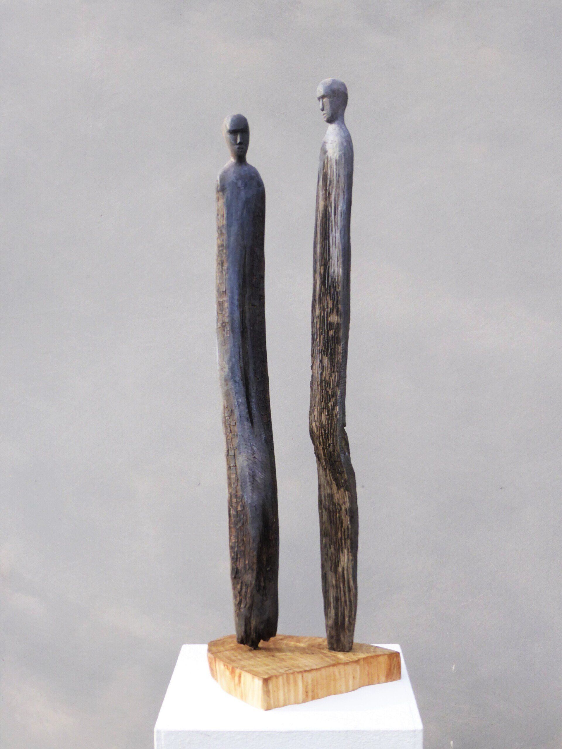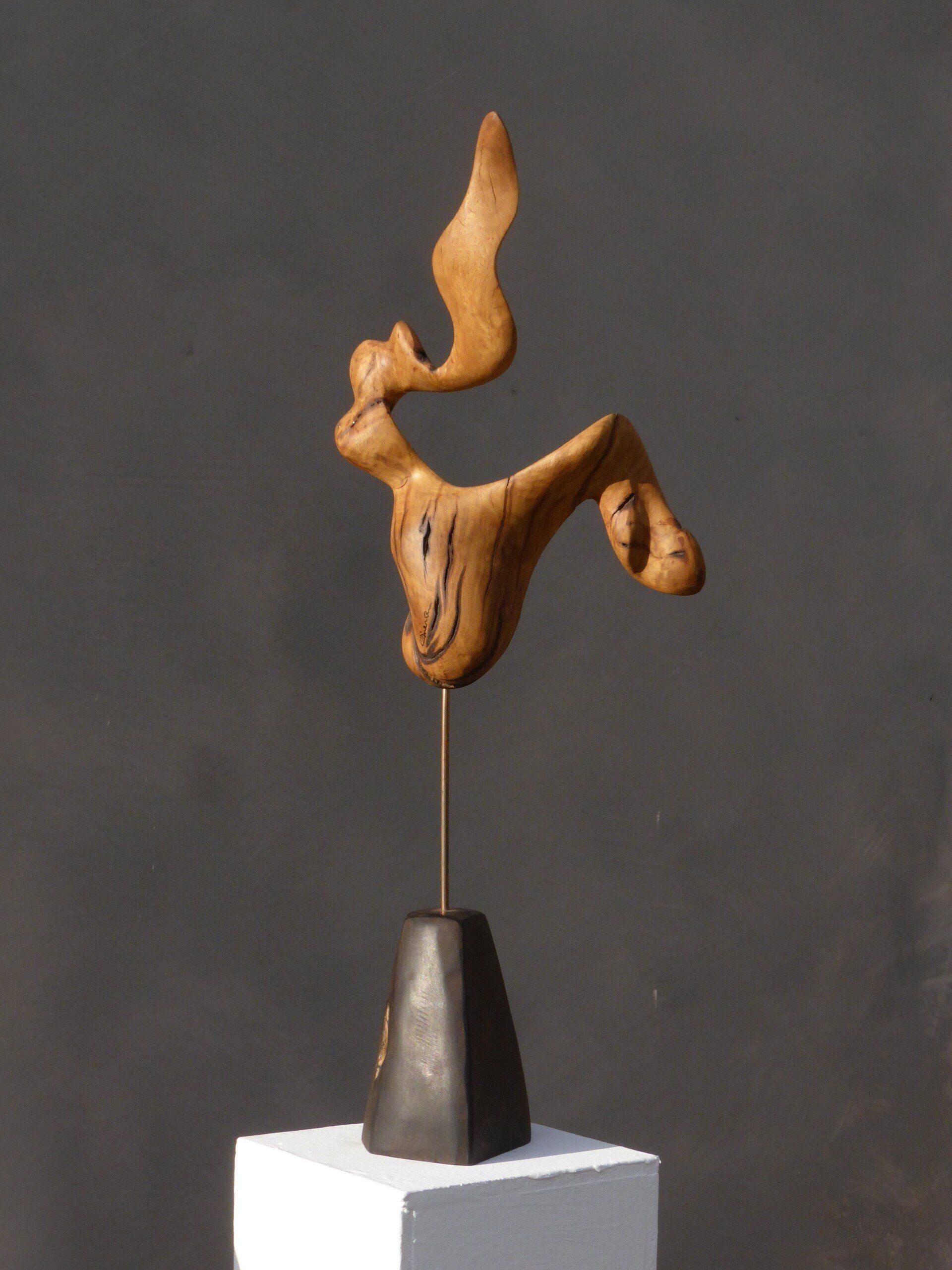 Das Ausgangsmaterial meiner Holzskulpturen ist vielfältiges Fundholz aus Raum und Zeit, wie mediterrane Pinien- und Olivenwurzeln, alte, schwarz gewordene Flusseiche aus der Elbe oder sogar 2000-jährige Mooreiche aus Ostfriesland.