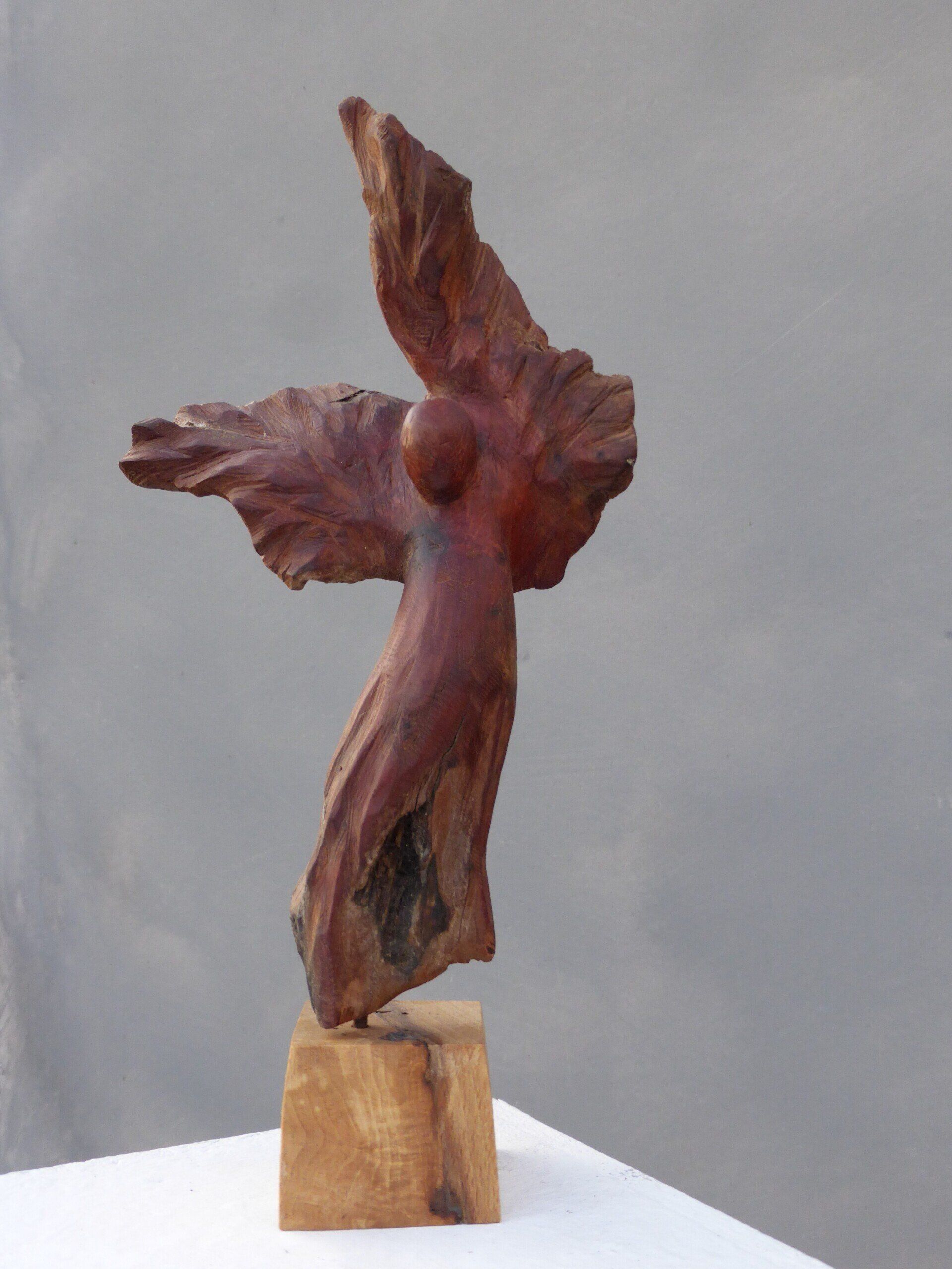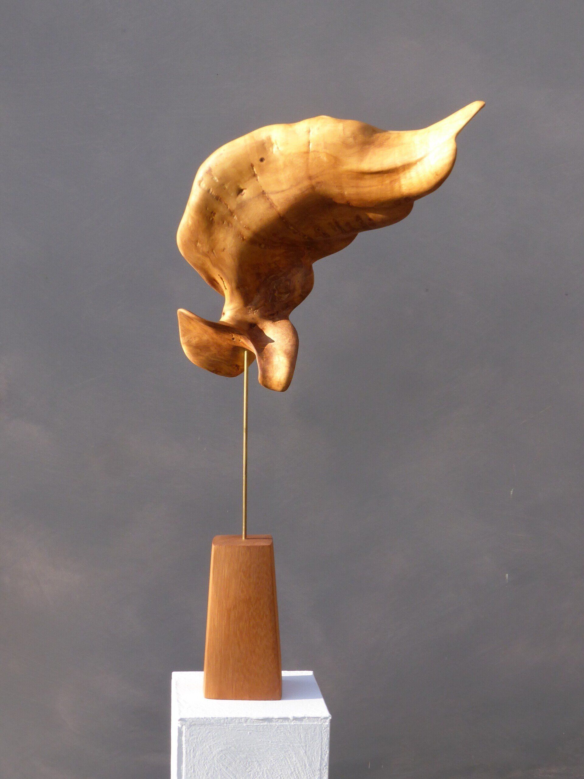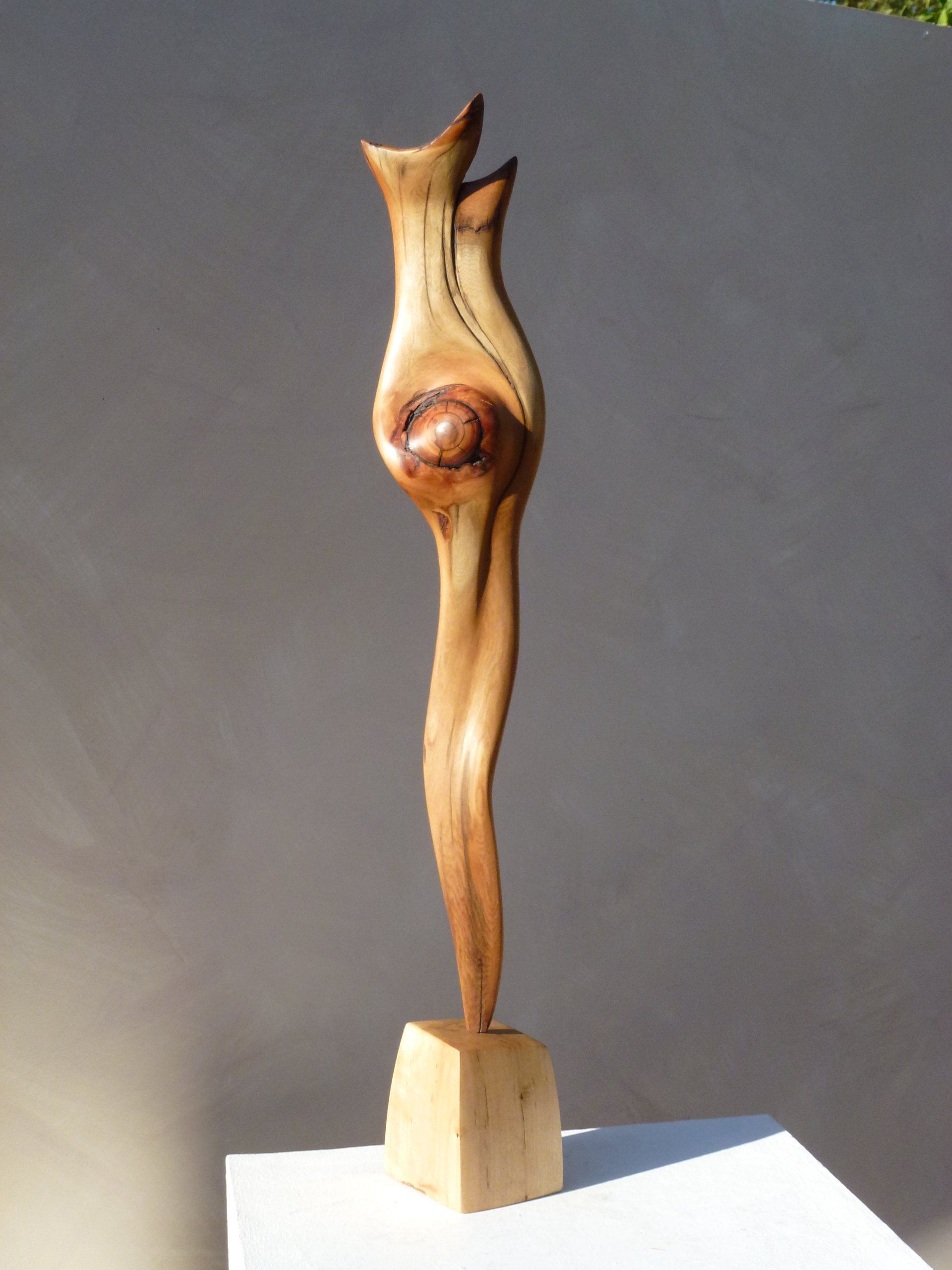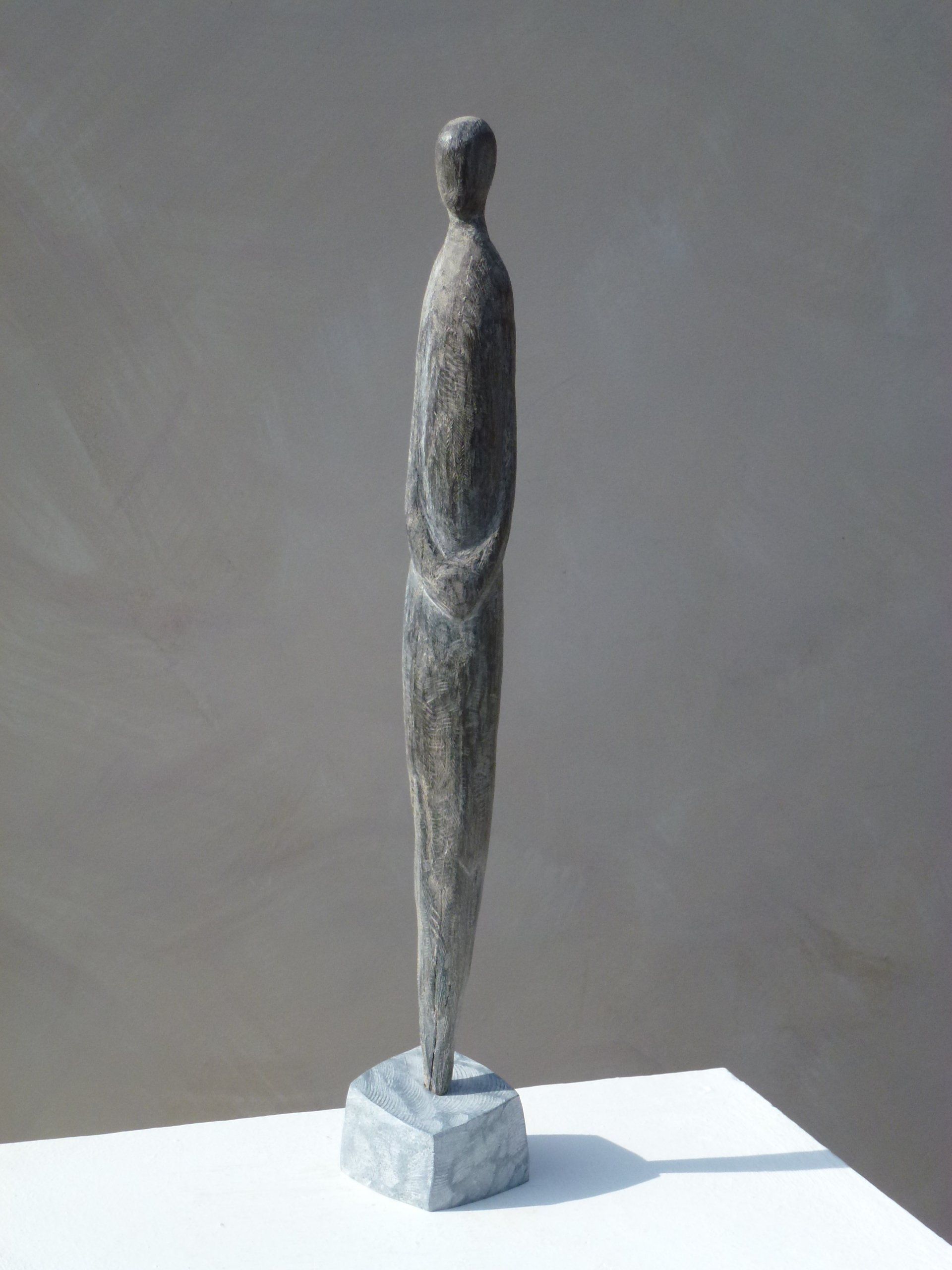 Das Ausgangsmaterial meiner Holzskulpturen ist vielfältiges Fundholz aus Raum und Zeit, wie mediterrane Pinien- und Olivenwurzeln, alte, schwarz gewordene Flusseiche aus der Elbe oder sogar 2000-jährige Mooreiche aus Ostfriesland.