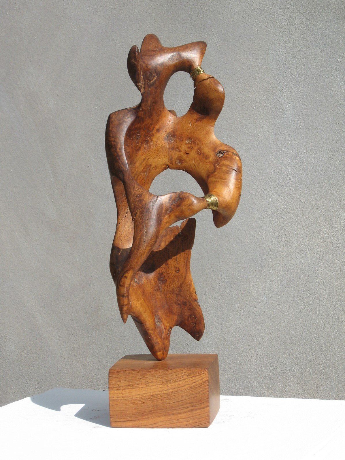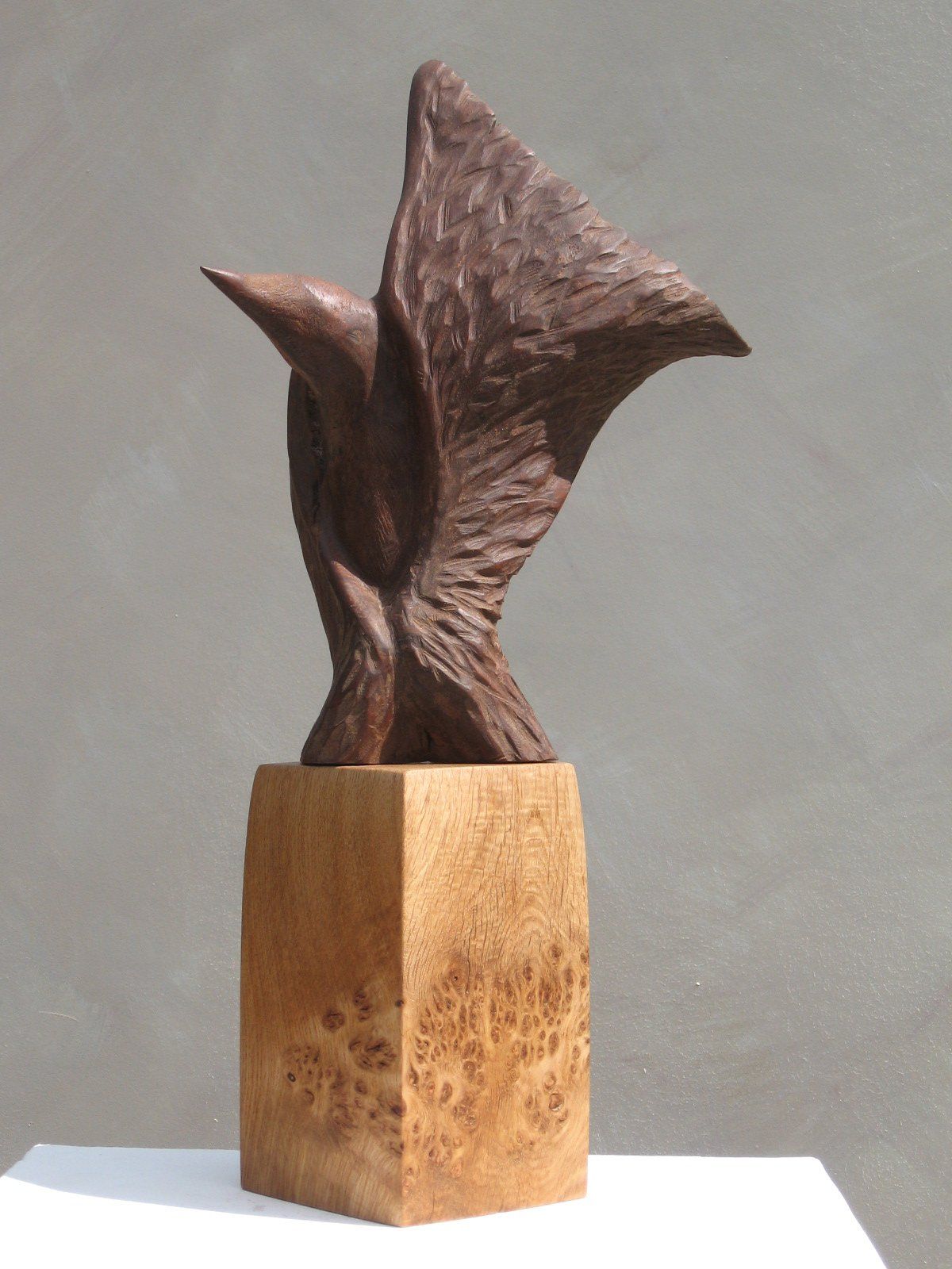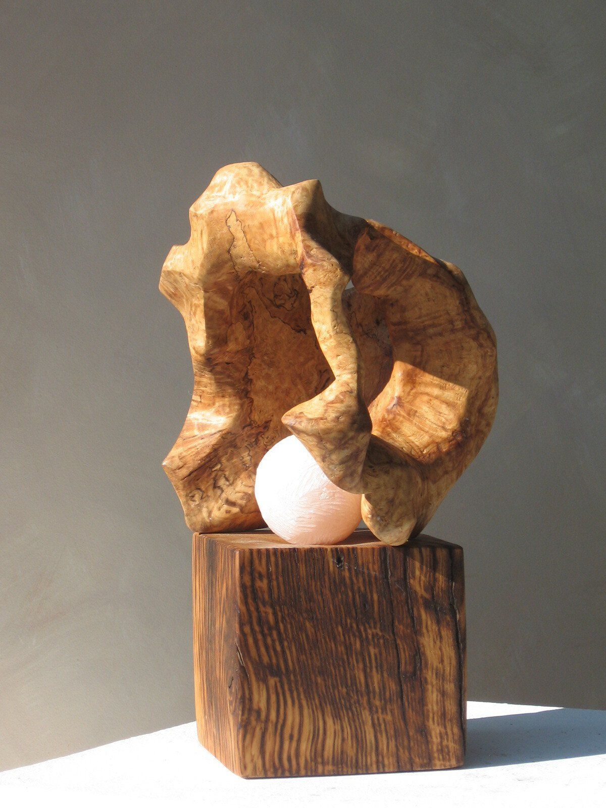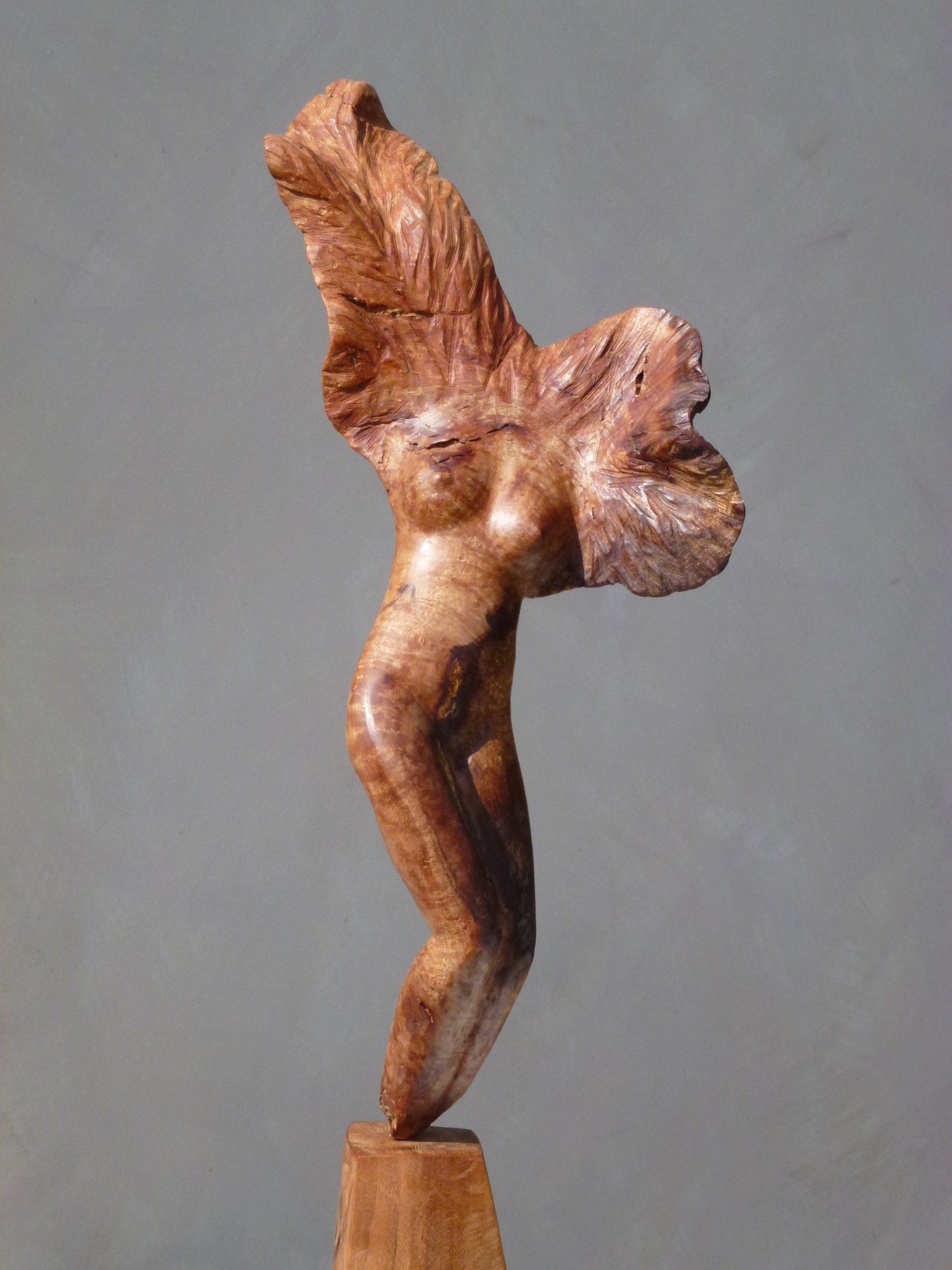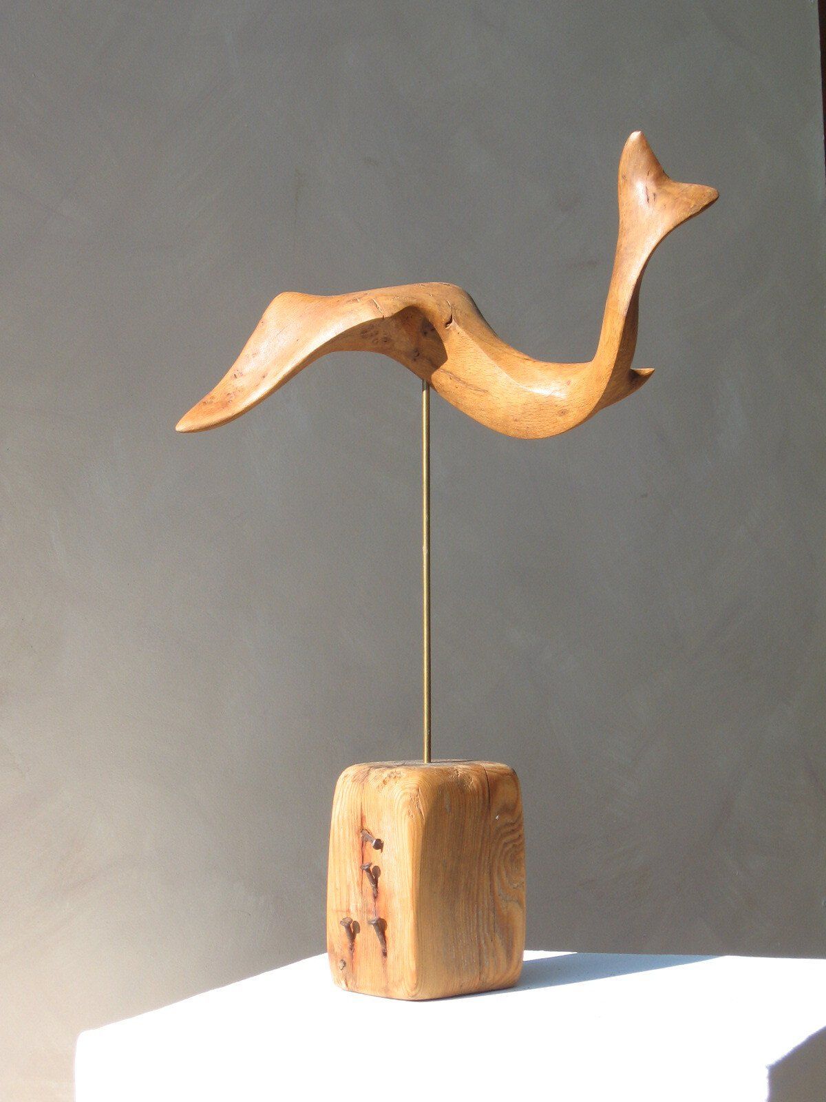 Das Ausgangsmaterial meiner Holzskulpturen ist vielfältiges Fundholz aus Raum und Zeit, wie mediterrane Pinien- und Olivenwurzeln, alte, schwarz gewordene Flusseiche aus der Elbe oder sogar 2000-jährige Mooreiche aus Ostfriesland.