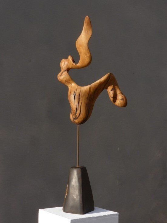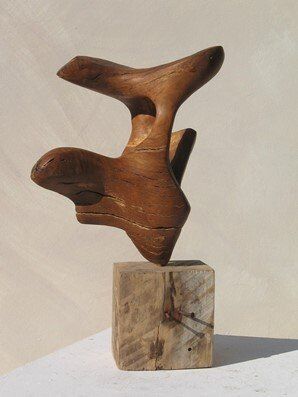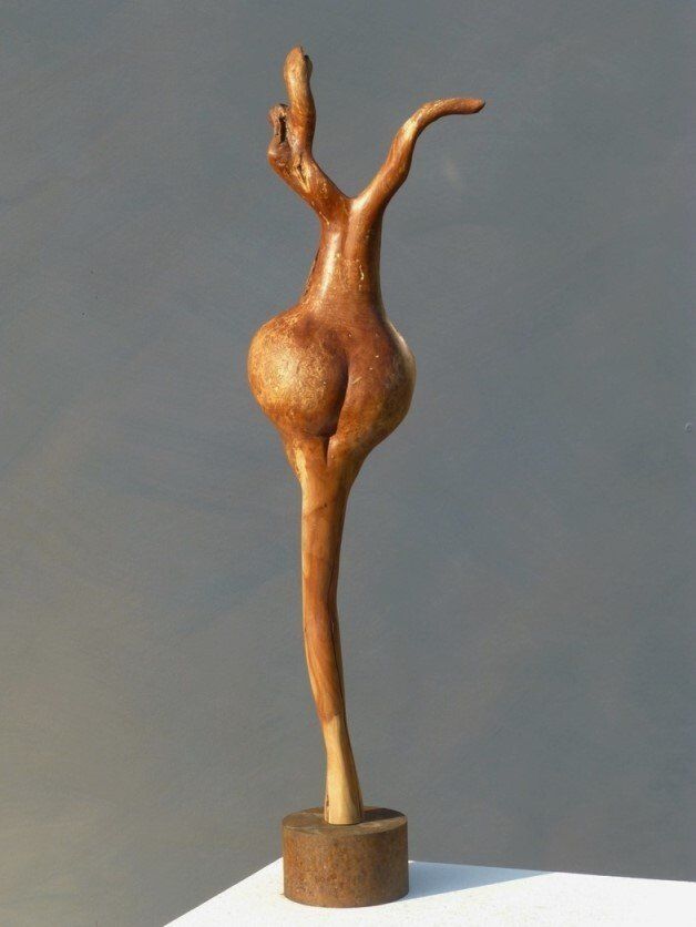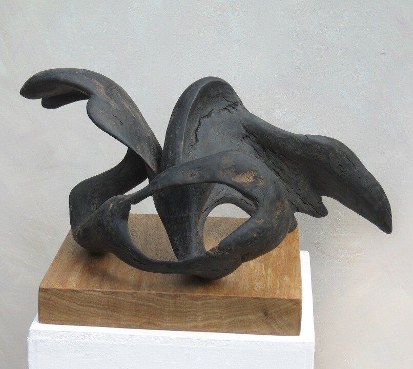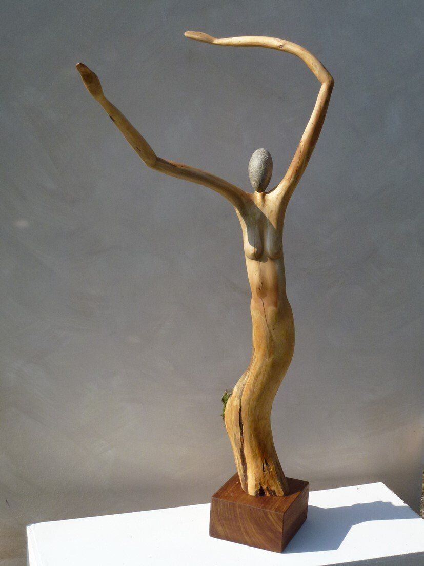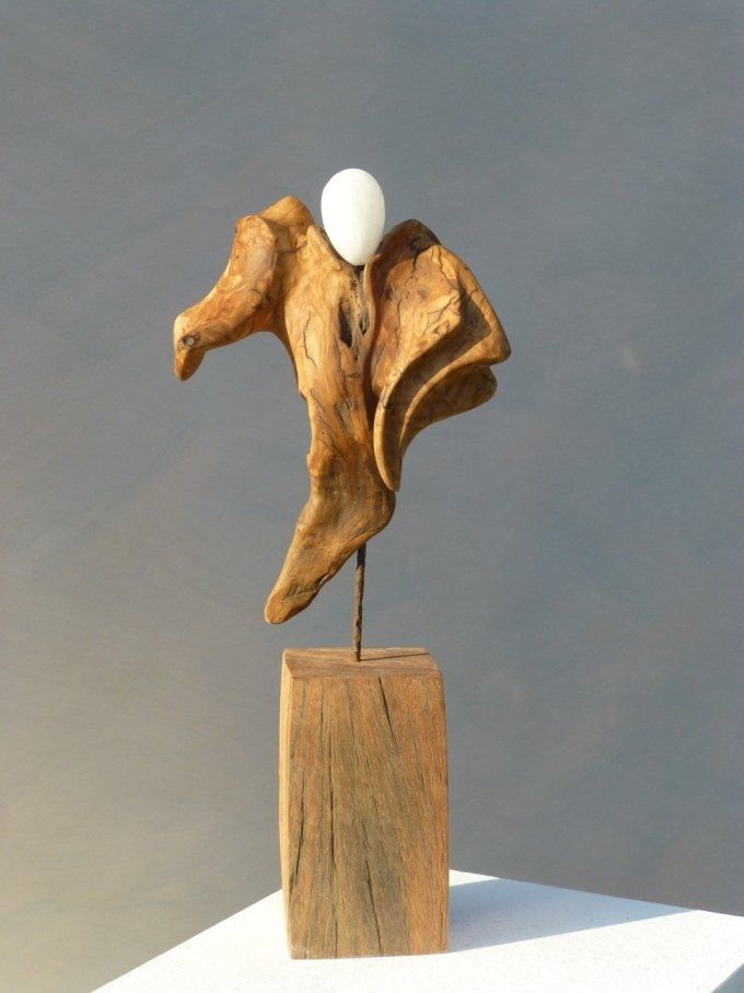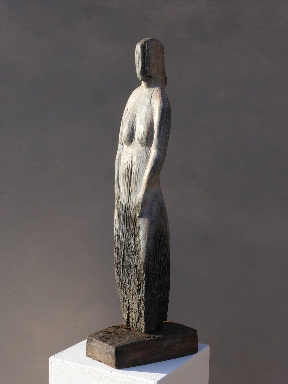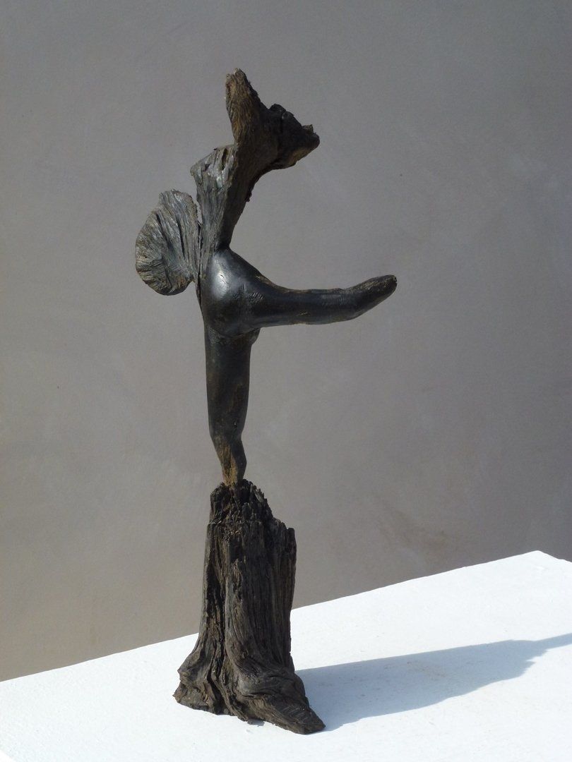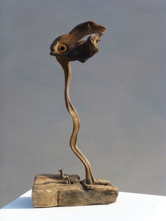 Das Ausgangsmaterial meiner Holzskulpturen ist vielfältiges Fundholz aus Raum und Zeit, wie mediterrane Pinien- und Olivenwurzeln, alte, schwarz gewordene Flusseiche aus der Elbe oder sogar 2000-jährige Mooreiche aus Ostfriesland.