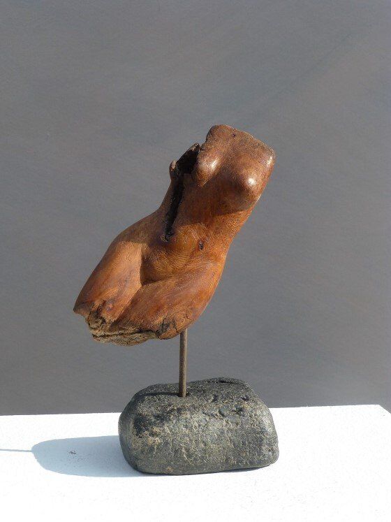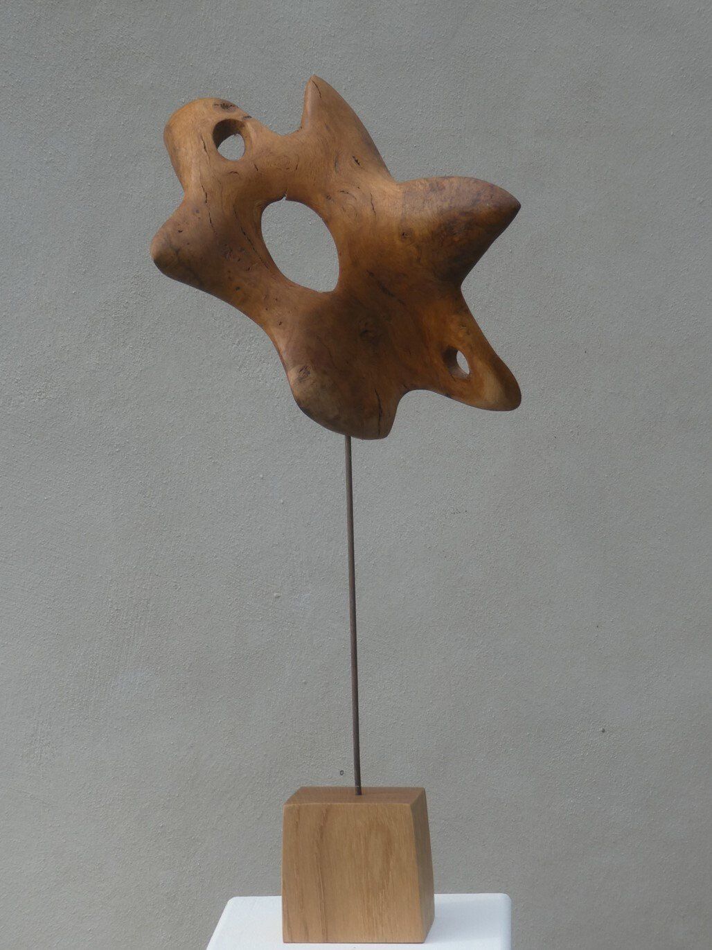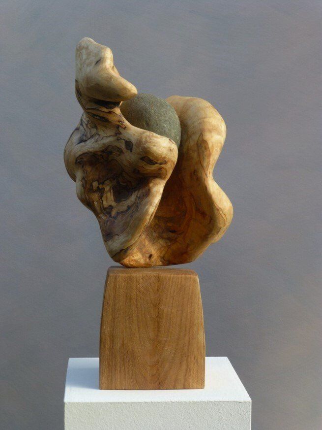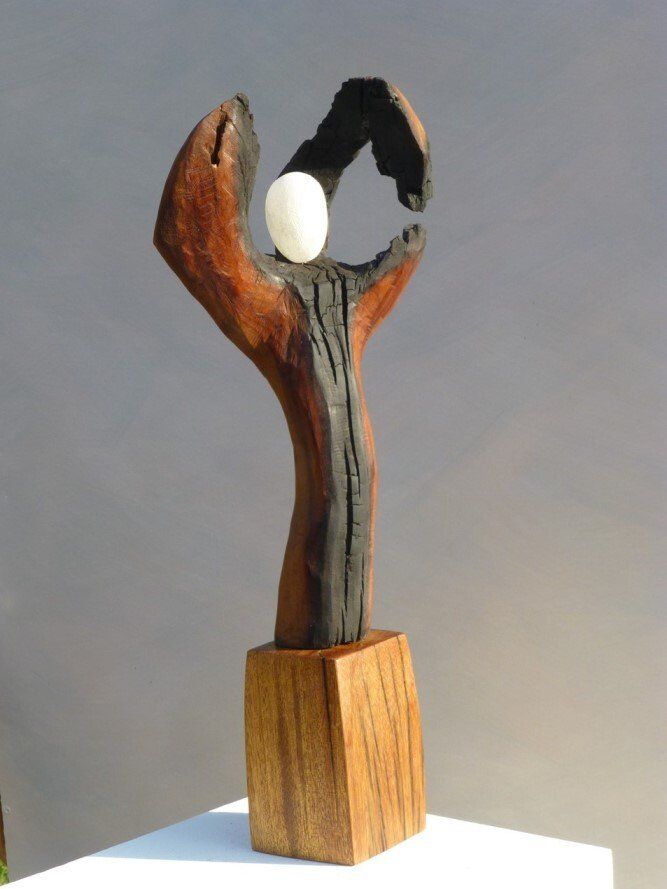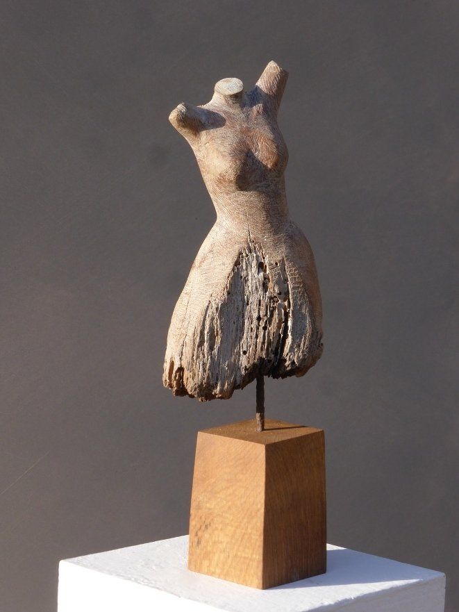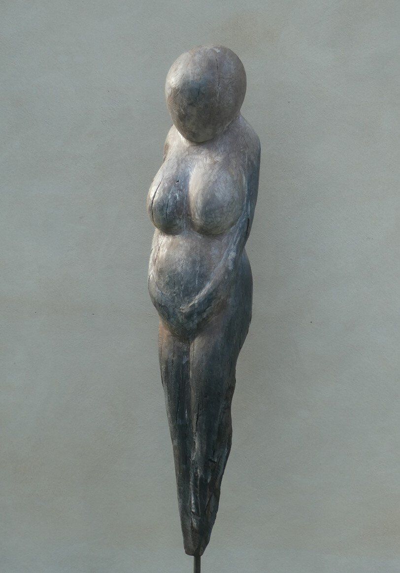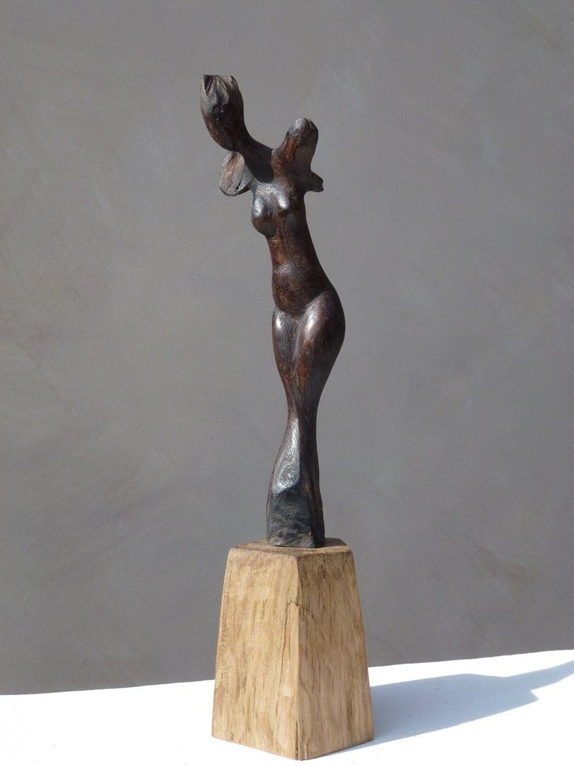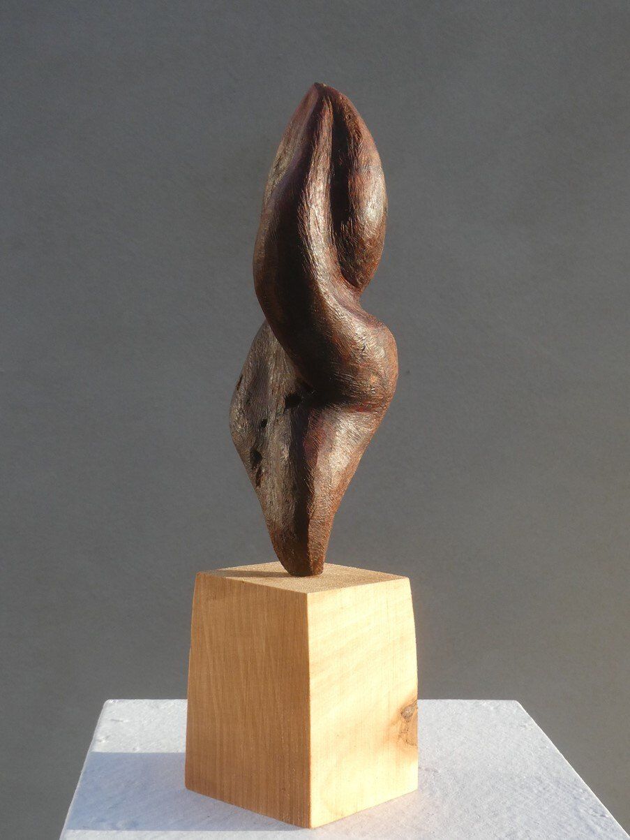 Das Ausgangsmaterial meiner Holzskulpturen ist vielfältiges Fundholz aus Raum und Zeit, wie mediterrane Pinien- und Olivenwurzeln, alte, schwarz gewordene Flusseiche aus der Elbe oder sogar 2000-jährige Mooreiche aus Ostfriesland.