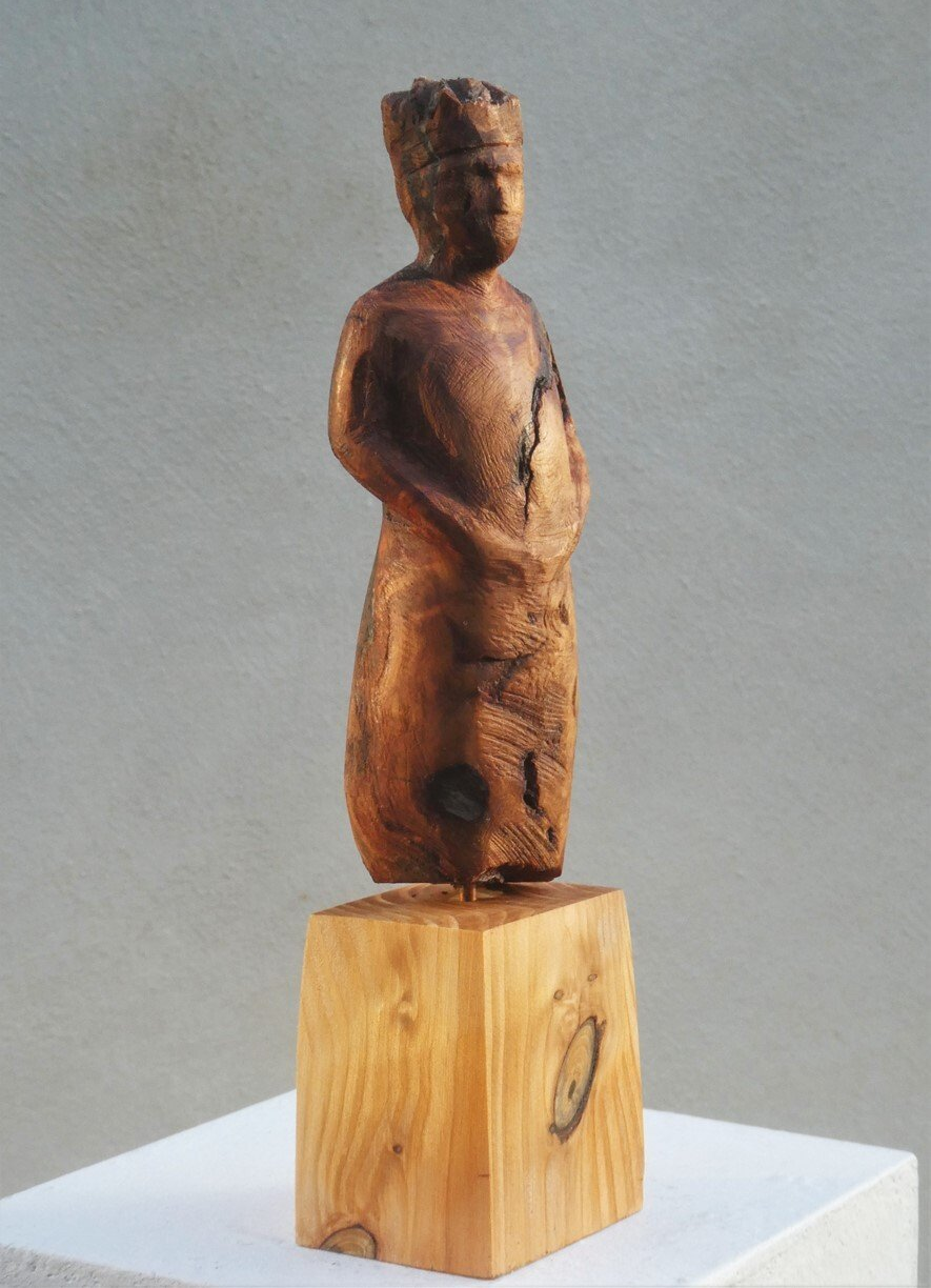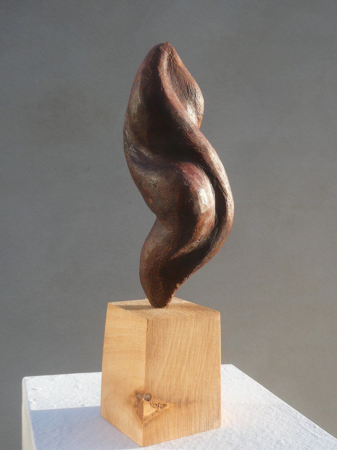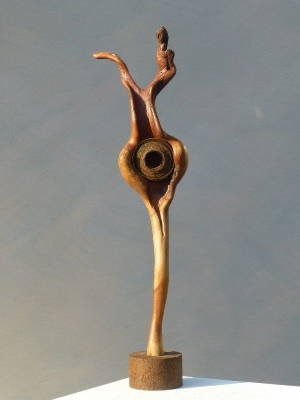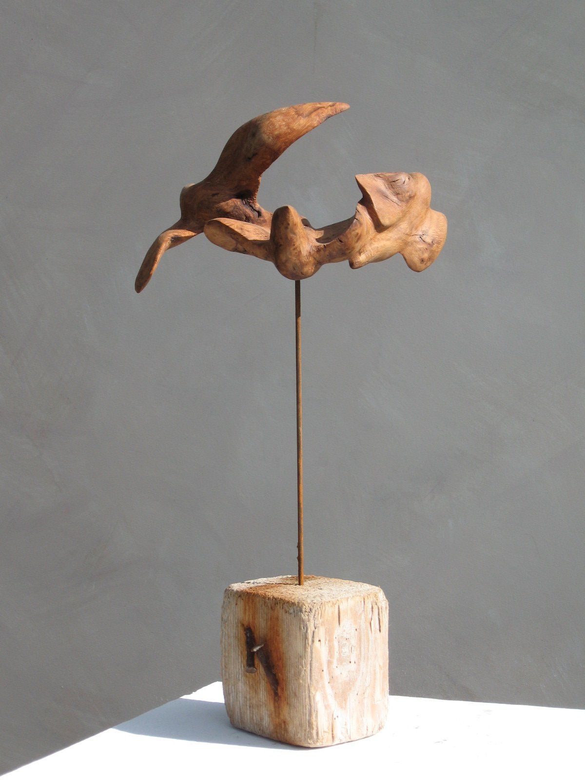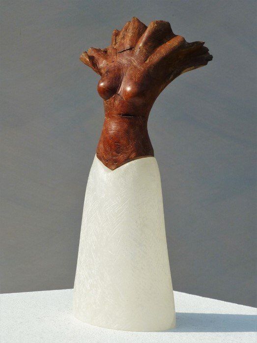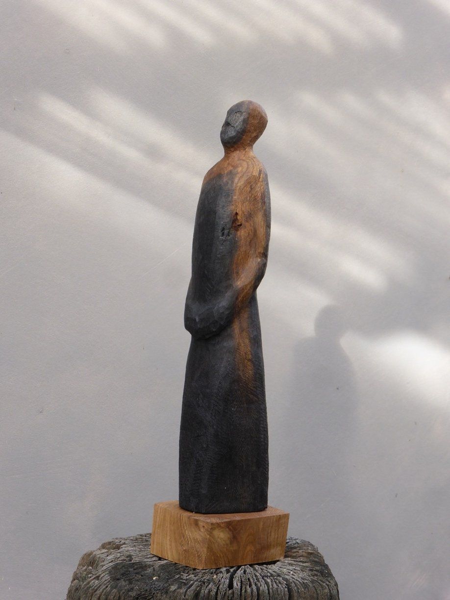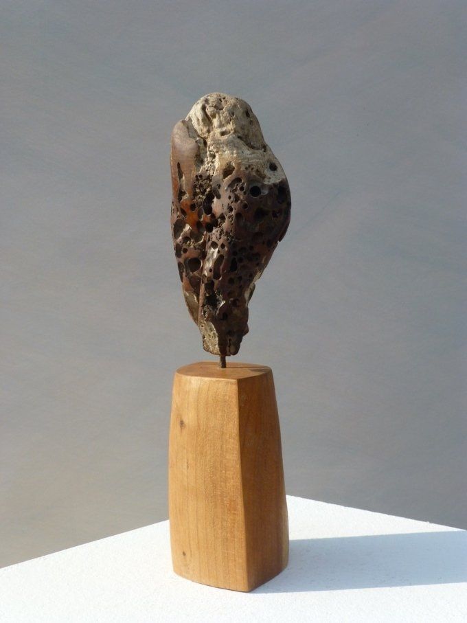 Das Ausgangsmaterial meiner Holzskulpturen ist vielfältiges Fundholz aus Raum und Zeit, wie mediterrane Pinien- und Olivenwurzeln, alte, schwarz gewordene Flusseiche aus der Elbe oder sogar 2000-jährige Mooreiche aus Ostfriesland.