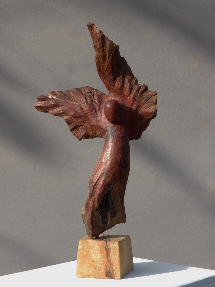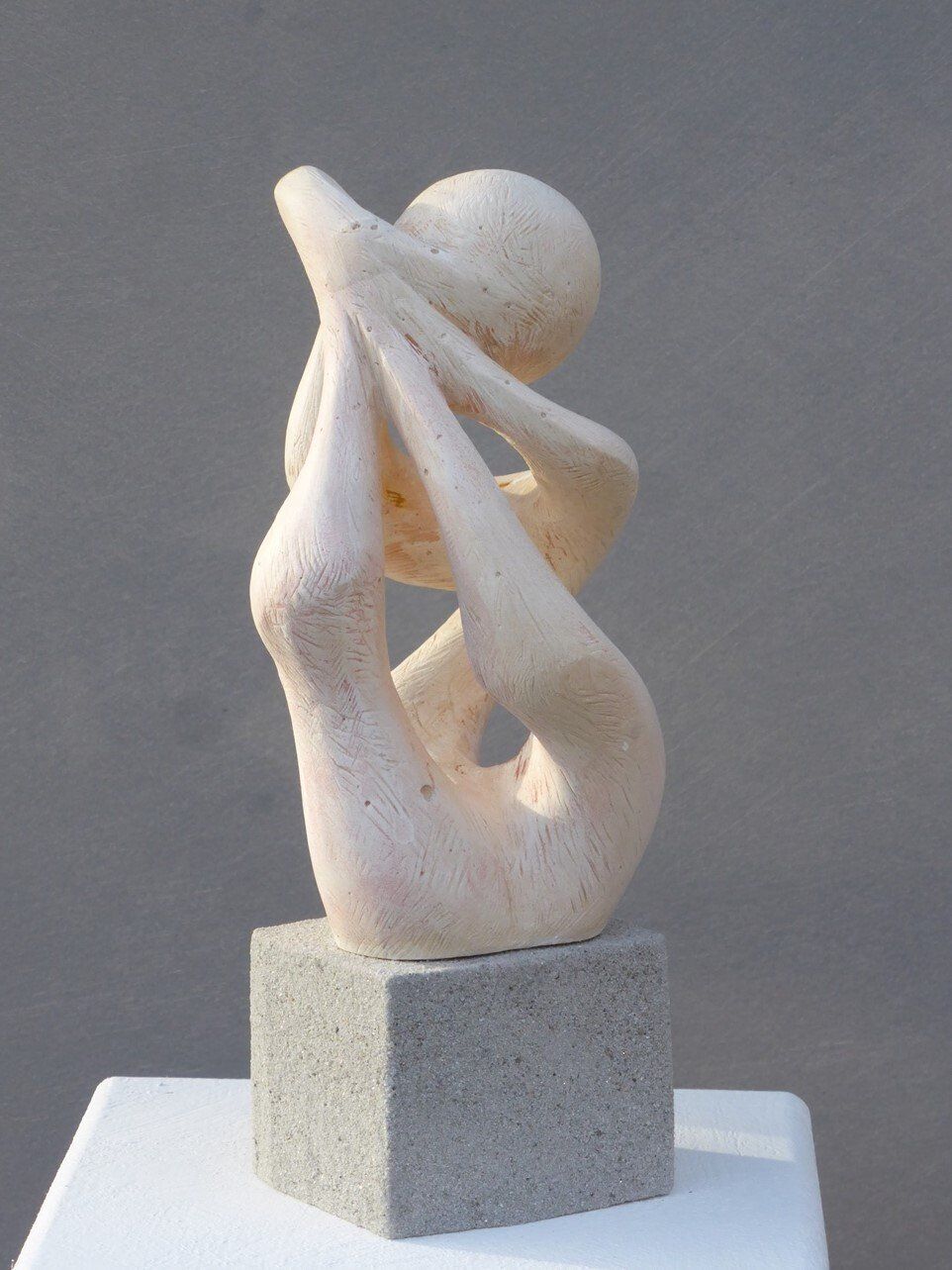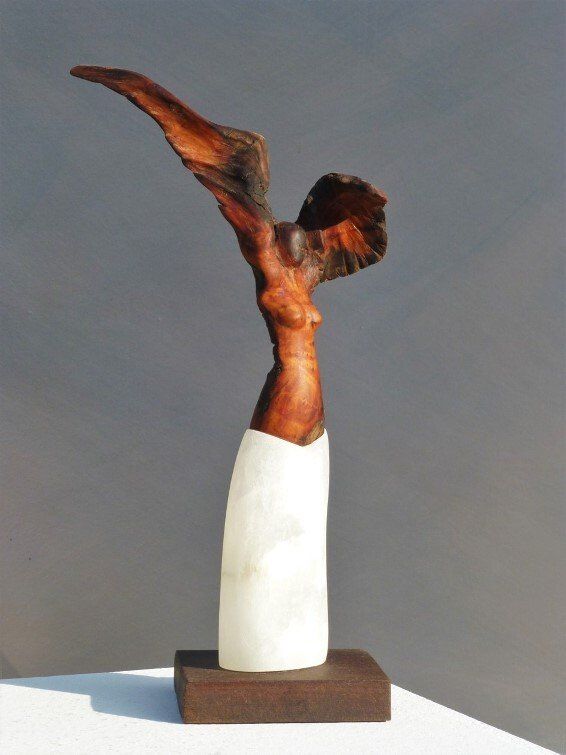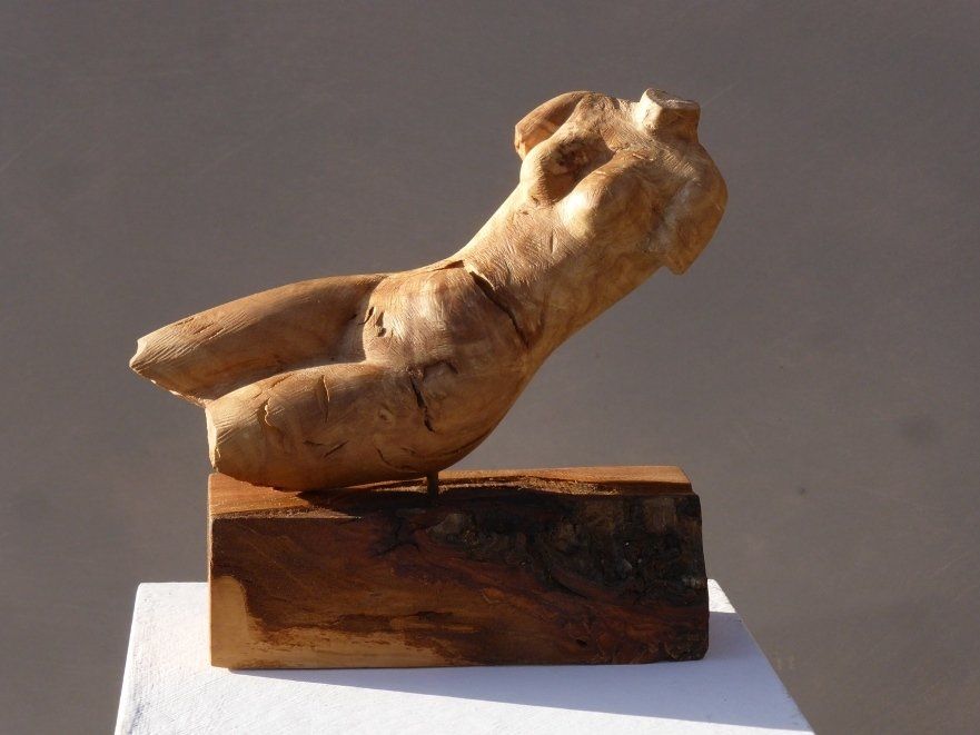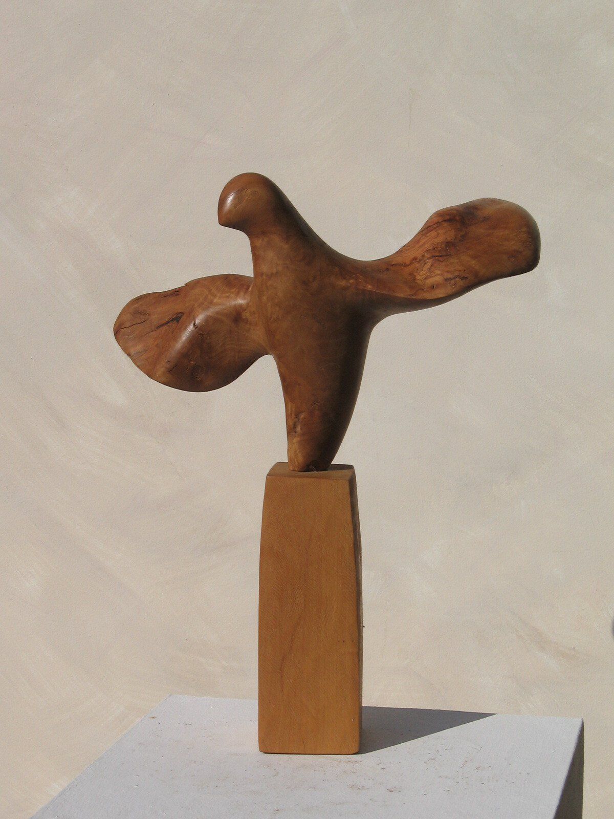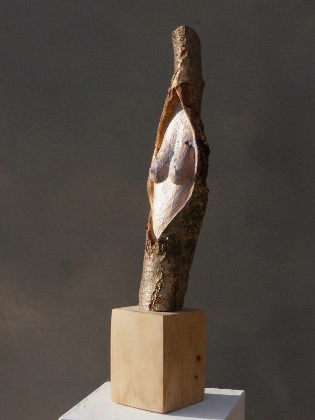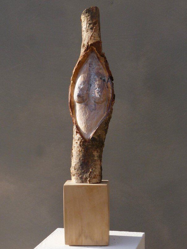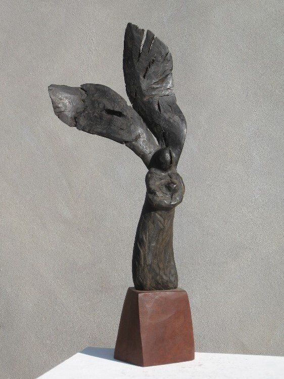 Das Ausgangsmaterial meiner Holzskulpturen ist vielfältiges Fundholz aus Raum und Zeit, wie mediterrane Pinien- und Olivenwurzeln, alte, schwarz gewordene Flusseiche aus der Elbe oder sogar 2000-jährige Mooreiche aus Ostfriesland.